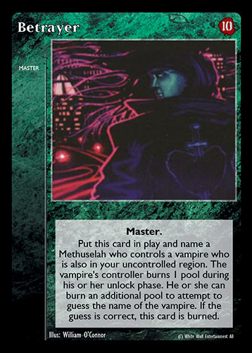 Nowa, niegrana karta Betrayer Vampire the Eternal Struggle z dodatku, w ktorym byla obecna.
