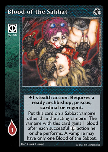 Nowa, niegrana karta Blood of the Sabbat Vampire the Eternal Struggle z dodatku, w ktorym byla obecna.