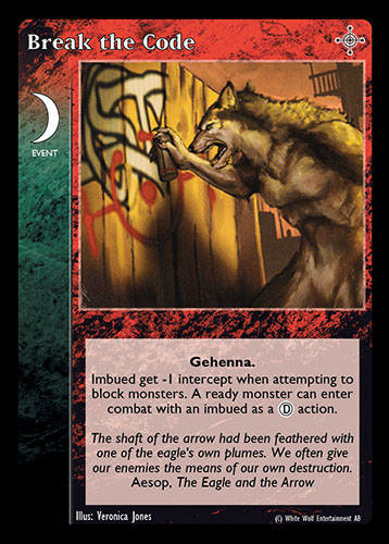 Nowa, niegrana karta Break the Code Vampire the Eternal Struggle z dodatku, w ktorym byla obecna.