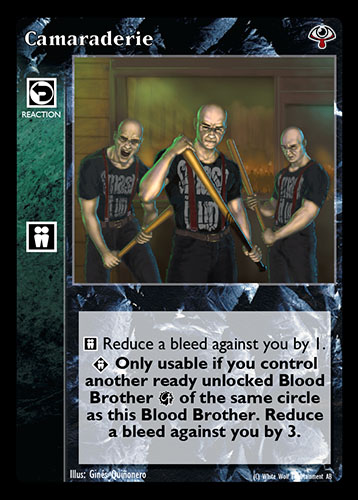 Nowa, niegrana karta Camaraderie Vampire the Eternal Struggle z dodatku, w ktorym byla obecna.