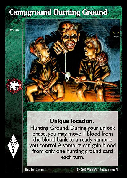 Nowa, niegrana karta Campground Hunting Ground Vampire the Eternal Struggle z dodatku, w ktorym byla obecna.