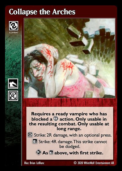 Nowa, niegrana karta Collapse the Arches Vampire the Eternal Struggle z dodatku, w ktorym byla obecna.