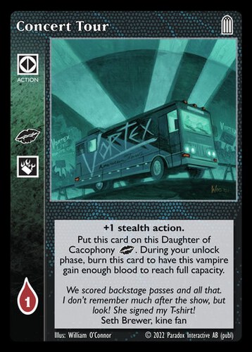 Nowa, niegrana karta Concert Tour Vampire the Eternal Struggle z dodatku, w ktorym byla obecna.