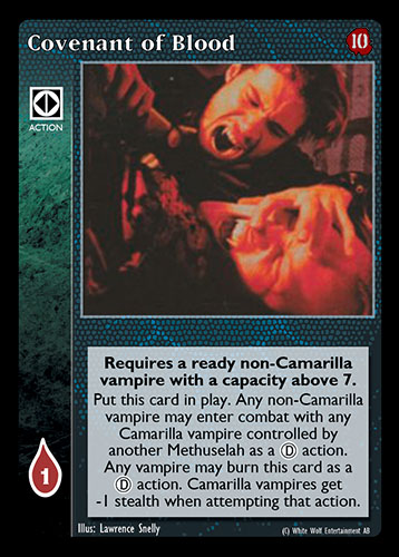 Nowa, niegrana karta Covenant of Blood Vampire the Eternal Struggle z dodatku, w ktorym byla obecna.