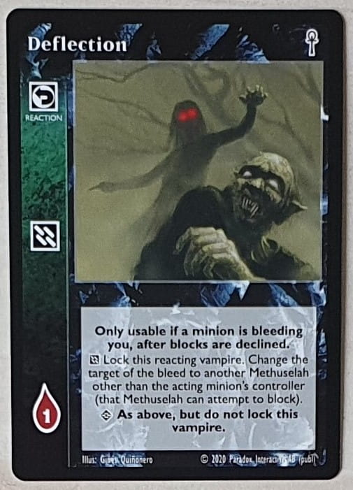 Nowa, niegrana karta Deflection Vampire the Eternal Struggle z dodatku, w ktorym byla obecna.