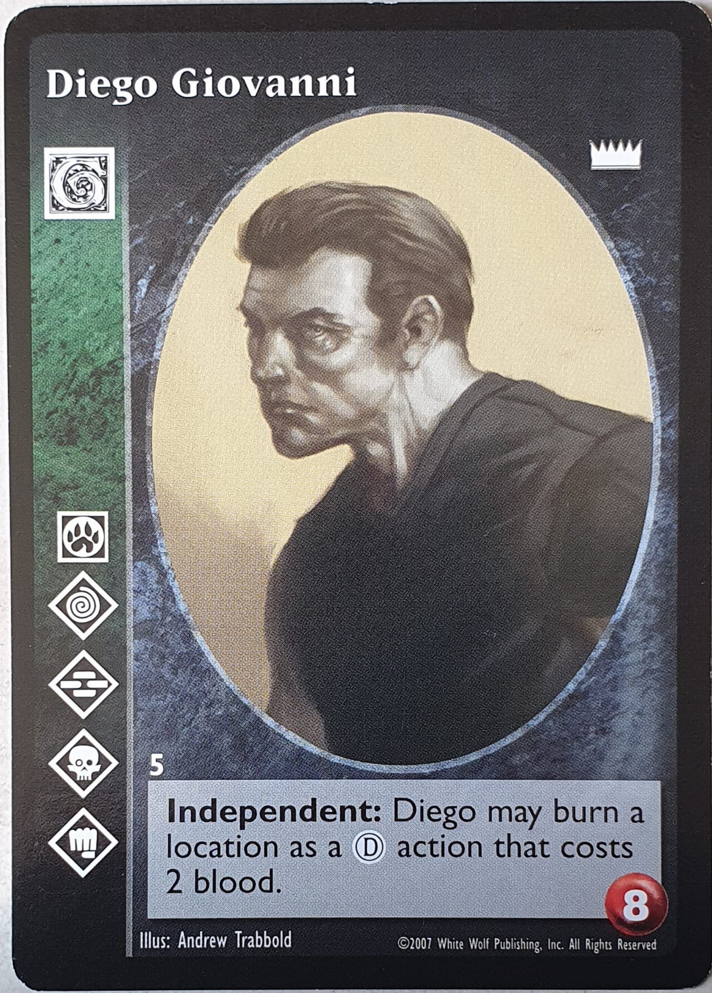 Nowa, niegrana karta Diego Giovanni Vampire the Eternal Struggle z dodatku, w ktorym byla obecna.