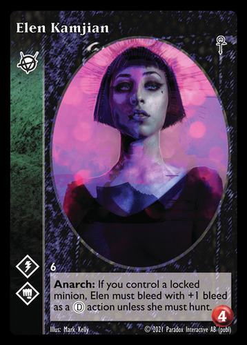 Nowa, niegrana karta Elen Kamjian Vampire the Eternal Struggle z dodatku, w ktorym byla obecna.