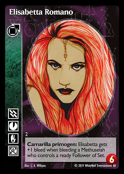Nowa, niegrana karta Elisabetta Romano Vampire the Eternal Struggle z dodatku, w ktorym byla obecna.