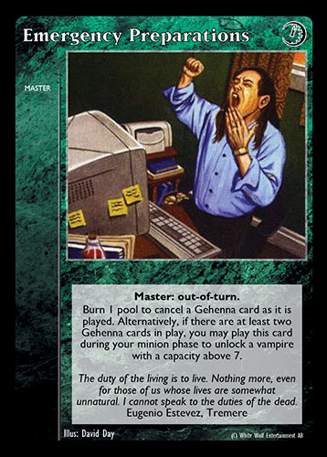 Nowa, niegrana karta Emergency Peparations Vampire the Eternal Struggle z dodatku, w ktorym byla obecna.