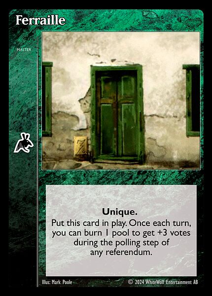 Nowa, niegrana karta Ferraille Vampire the Eternal Struggle z dodatku, w ktorym byla obecna.