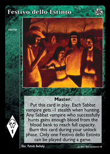 Nowa, niegrana karta Festivo dello Estino Vampire the Eternal Struggle z dodatku, w ktorym byla obecna.