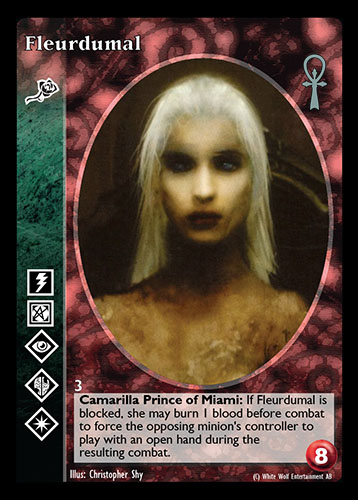 Nowa, niegrana karta Fleurdumal Vampire the Eternal Struggle z dodatku, w ktorym byla obecna.