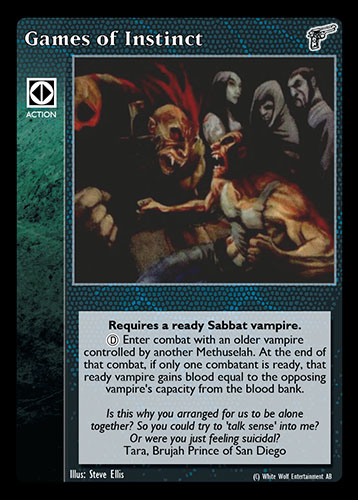 Nowa, niegrana karta Games of Instinct Vampire the Eternal Struggle z dodatku, w ktorym byla obecna.