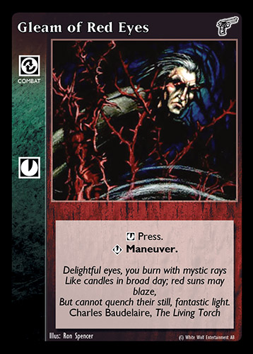 Nowa, niegrana karta Gleam of Red Eyes Vampire the Eternal Struggle z dodatku, w ktorym byla obecna.