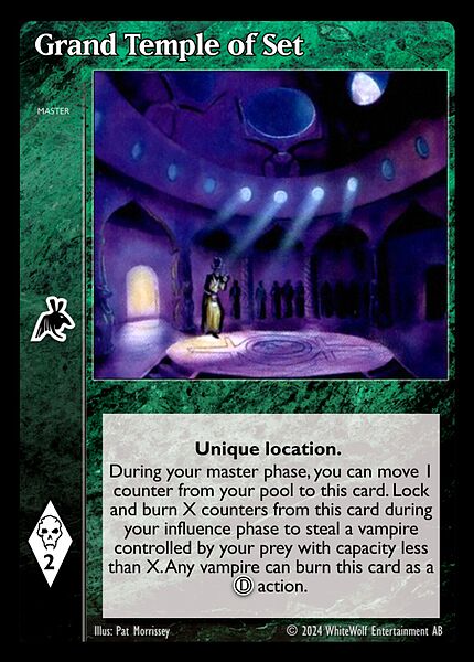Nowa, niegrana karta Grand Temple of Set Vampire the Eternal Struggle z dodatku, w ktorym byla obecna.