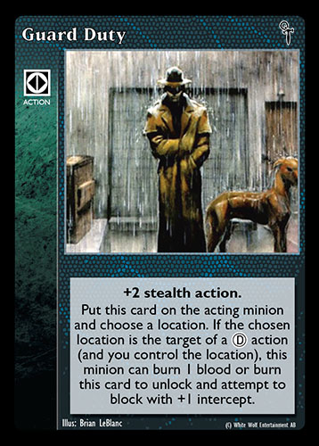 Nowa, niegrana karta Guard Duty Vampire the Eternal Struggle z dodatku, w ktorym byla obecna.