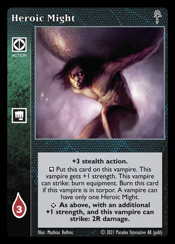 Nowa, niegrana karta Heroic Might Vampire the Eternal Struggle z dodatku, w ktorym byla obecna.