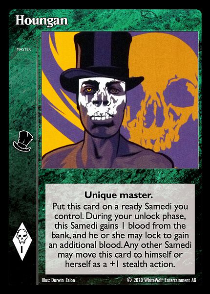 Nowa, niegrana karta Houngan Vampire the Eternal Struggle z dodatku, w ktorym byla obecna.