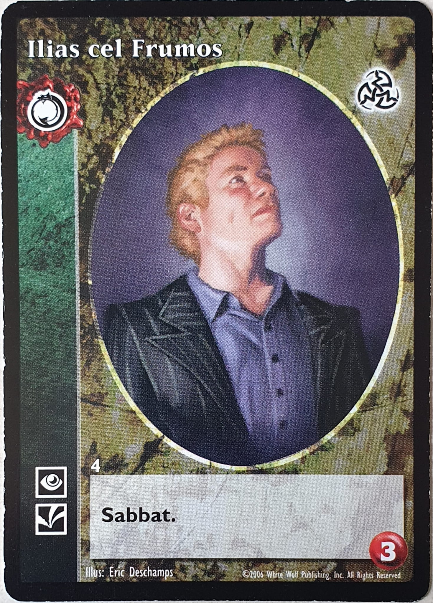 Nowa, niegrana karta Ilias cel Frumos Vampire the Eternal Struggle z dodatku, w ktorym byla obecna.