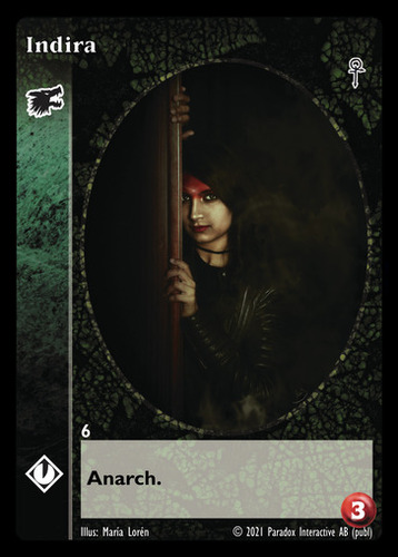Nowa, niegrana karta Indira Vampire the Eternal Struggle z dodatku, w ktorym byla obecna.