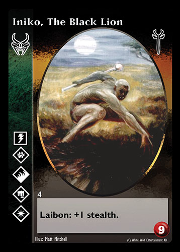 Nowa, niegrana karta Iniko, The Black Lion Vampire the Eternal Struggle z dodatku, w ktorym byla obecna.