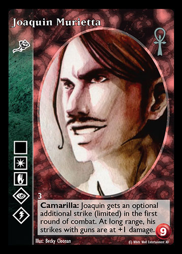 Nowa, niegrana karta Joaquin Murietta Vampire the Eternal Struggle z dodatku, w ktorym byla obecna.