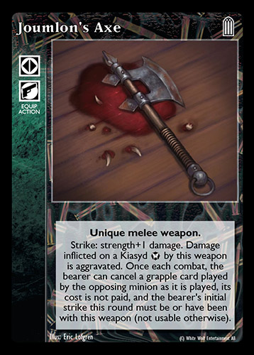 Nowa, niegrana karta Joumlon’s Axe Vampire the Eternal Struggle z dodatku, w ktorym byla obecna.