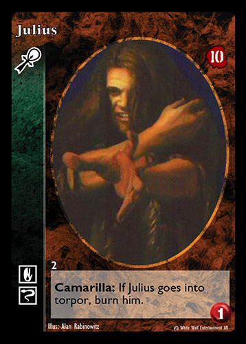 Nowa, niegrana karta Julius Vampire the Eternal Struggle z dodatku, w ktorym byla obecna.