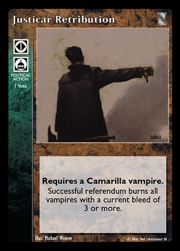 Nowa, niegrana karta Justicar Retribution Vampire the Eternal Struggle z dodatku, w ktorym byla obecna.