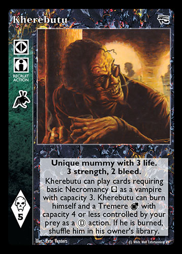 Nowa, niegrana karta Kherebutu Vampire the Eternal Struggle z dodatku, w ktorym byla obecna.