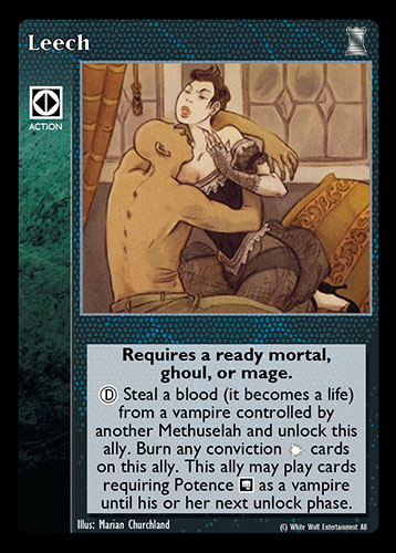Nowa, niegrana karta Leech Vampire the Eternal Struggle z dodatku, w ktorym byla obecna.