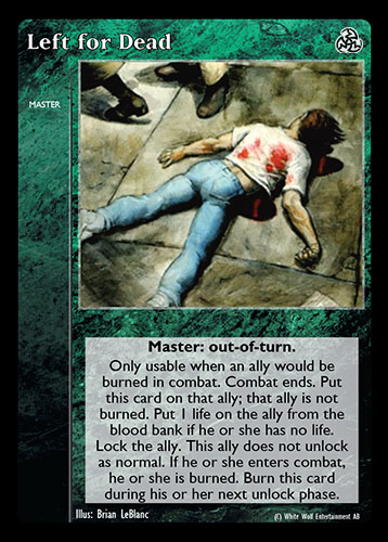 Nowa, niegrana karta Left for Dead Vampire the Eternal Struggle z dodatku, w ktorym byla obecna.