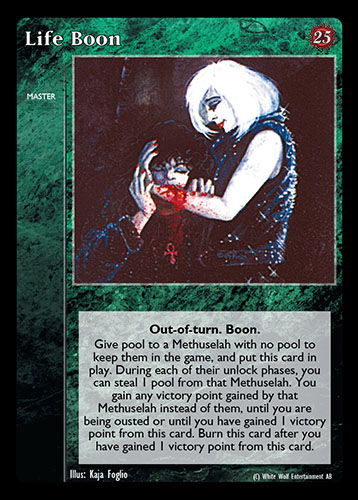 Nowa, niegrana karta Life Boon Vampire the Eternal Struggle z dodatku, w ktorym byla obecna.