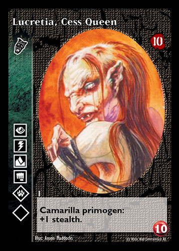 Nowa, niegrana karta Lucretia, Cess Queen Vampire the Eternal Struggle z dodatku, w ktorym byla obecna.