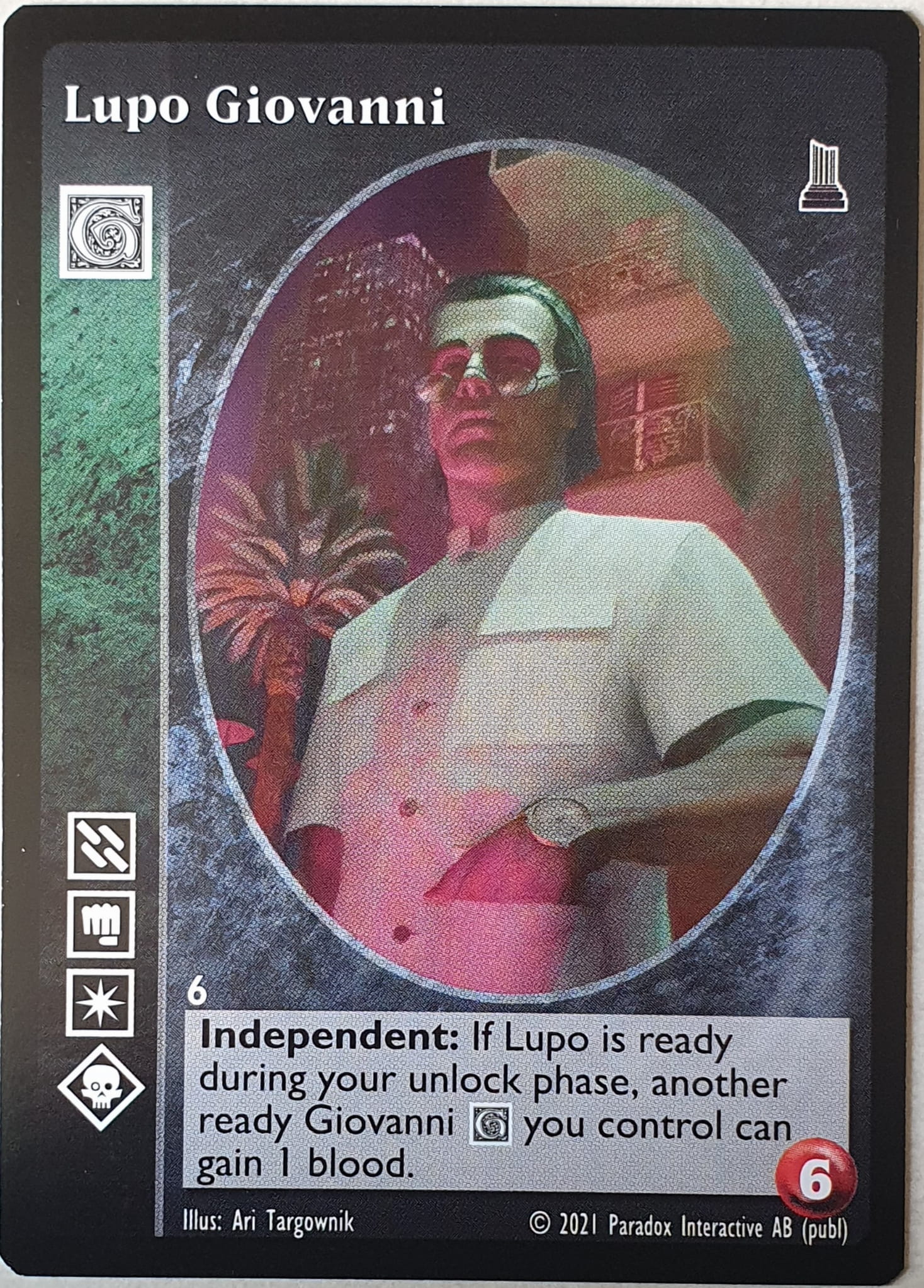 Nowa, niegrana karta Lupo Giovanni Vampire the Eternal Struggle z dodatku, w ktorym byla obecna.