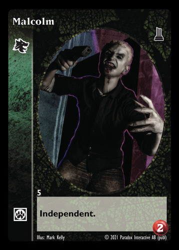 Nowa, niegrana karta Malcolm Vampire the Eternal Struggle z dodatku, w ktorym byla obecna.
