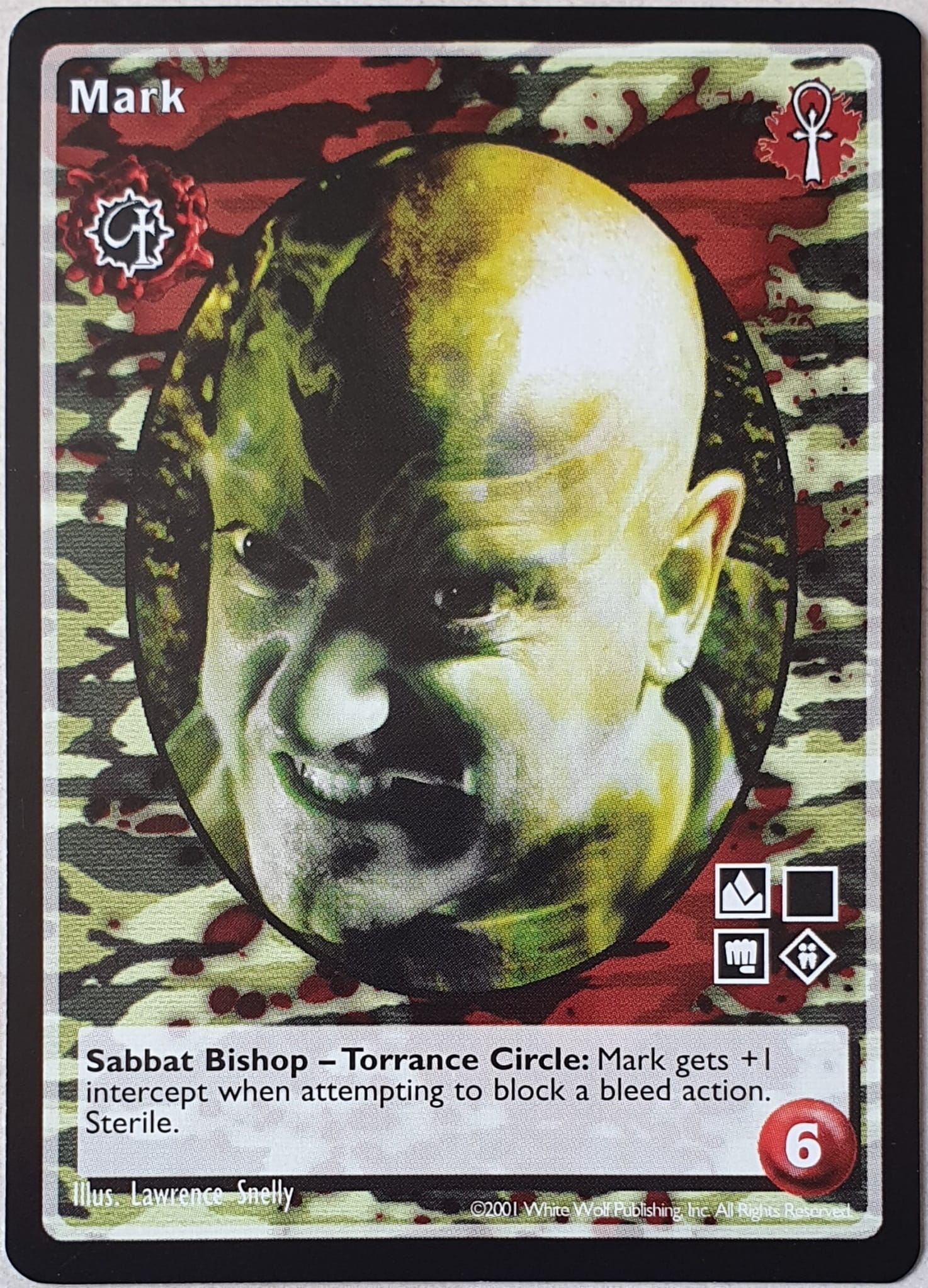 Nowa, niegrana karta Mark Vampire the Eternal Struggle z dodatku, w ktorym byla obecna.