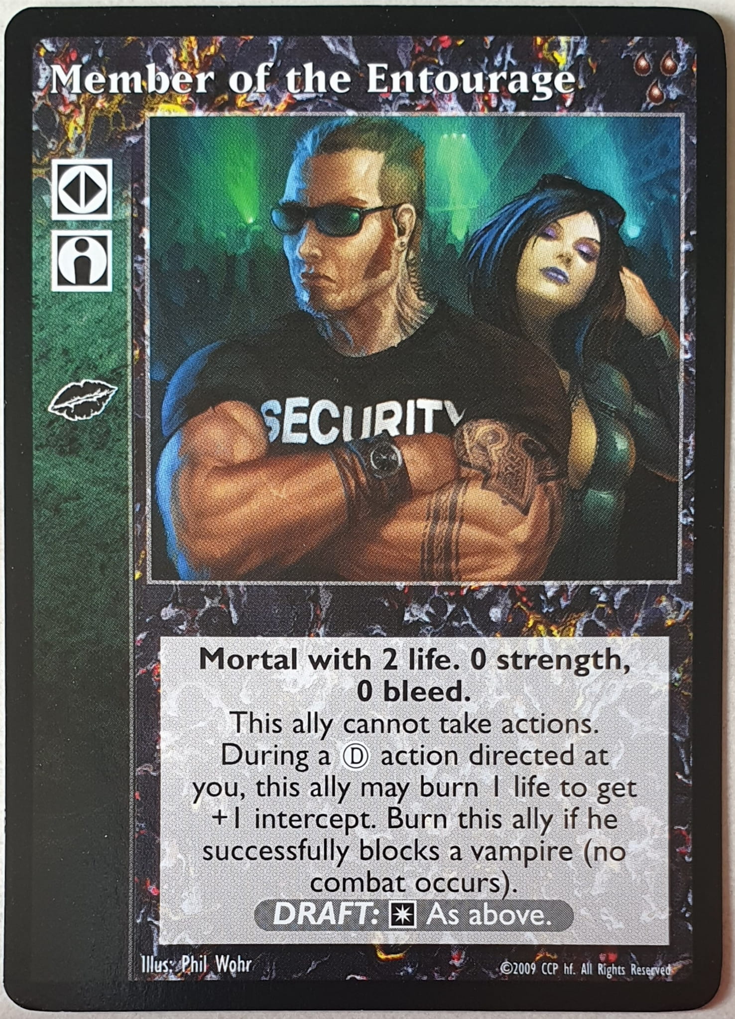 Nowa, niegrana karta Member of the Entourage Vampire the Eternal Struggle z dodatku, w ktorym byla obecna.