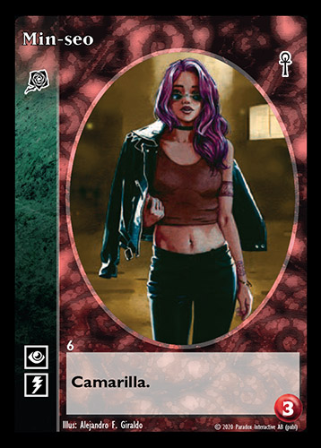 Nowa, niegrana karta Min-seo Vampire the Eternal Struggle z dodatku, w ktorym byla obecna.