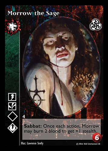 Nowa, niegrana karta Morrow the Sage Vampire the Eternal Struggle z dodatku, w ktorym byla obecna.