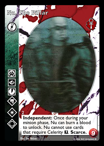 Nowa, niegrana karta Nu, The Pillar Vampire the Eternal Struggle z dodatku, w ktorym byla obecna.