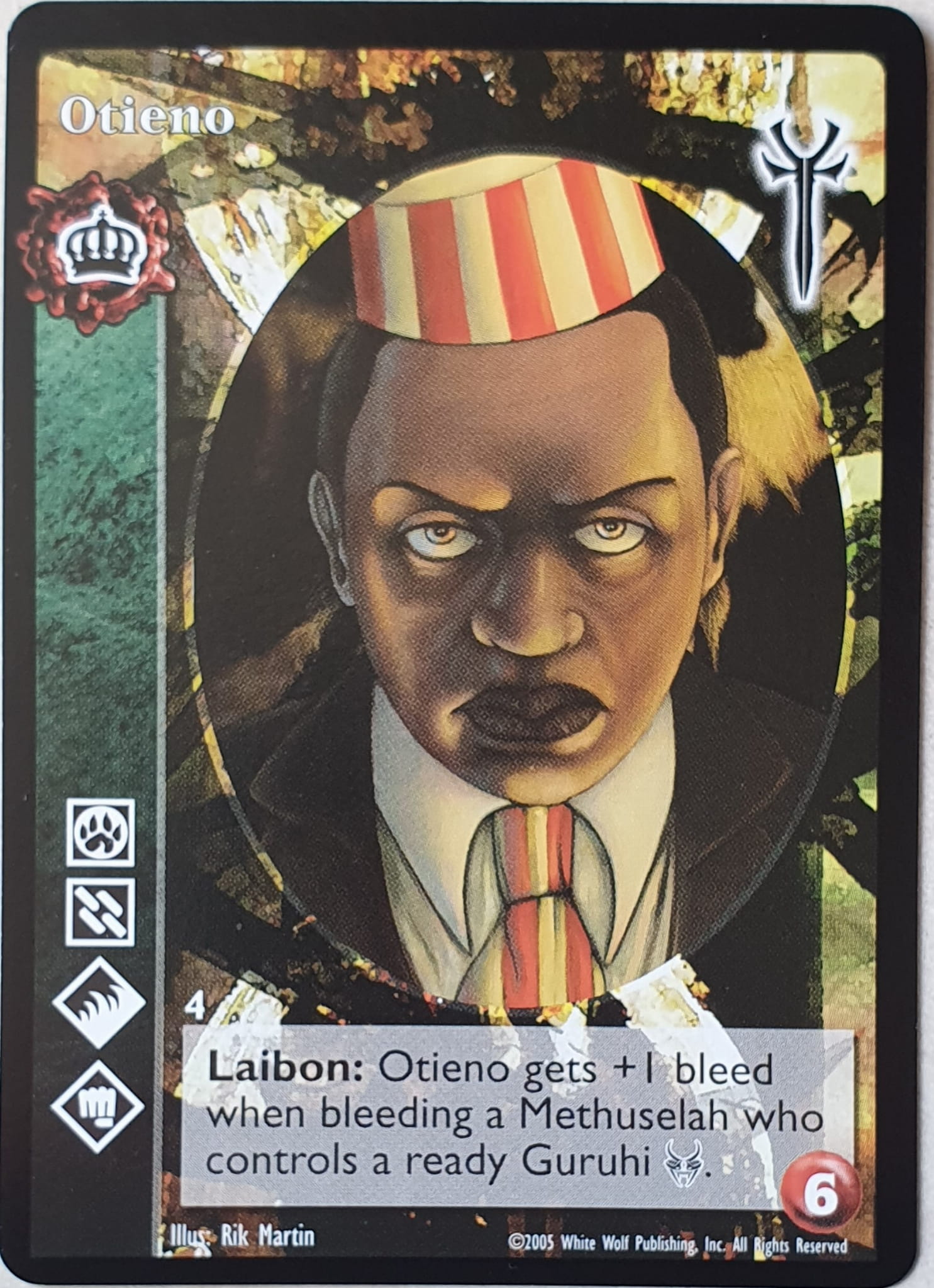 Nowa, niegrana karta Otieno Vampire the Eternal Struggle z dodatku, w ktorym byla obecna.