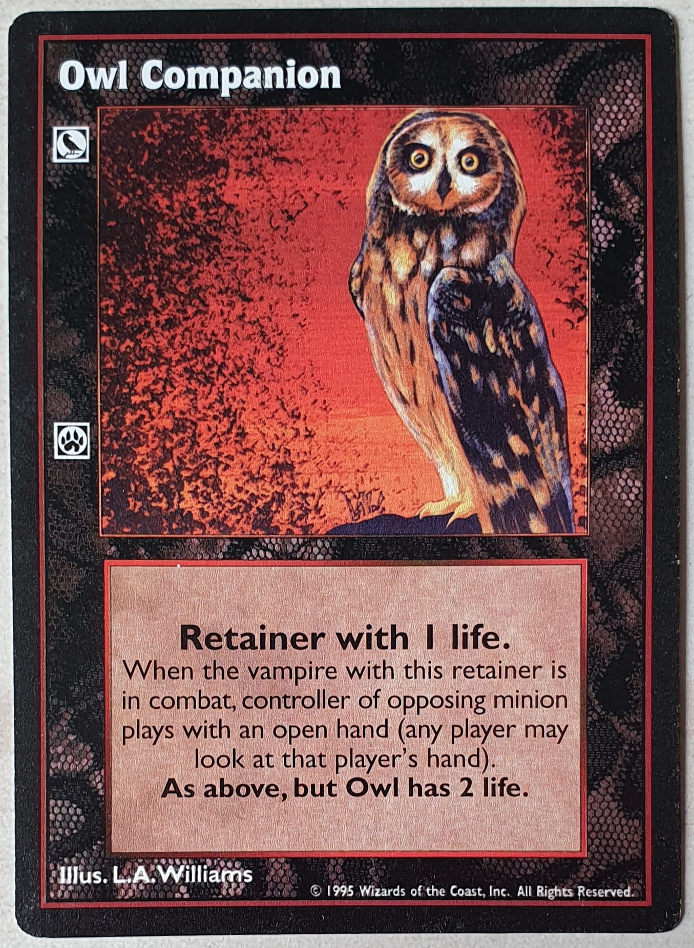 Nowa, niegrana karta Owl Companion Vampire the Eternal Struggle z dodatku, w ktorym byla obecna.