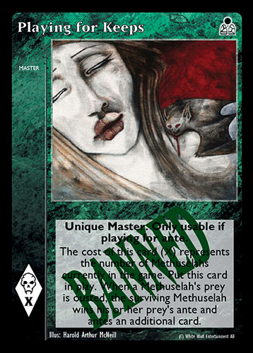 Nowa, niegrana karta Playing for Keeps Vampire the Eternal Struggle z dodatku, w ktorym byla obecna.