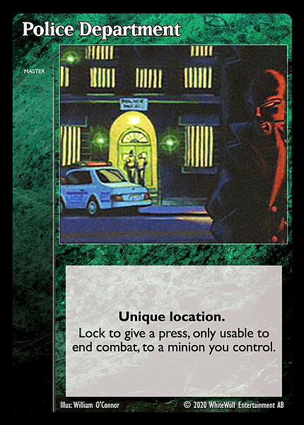 Nowa, niegrana karta Police Department Vampire the Eternal Struggle z dodatku, w ktorym byla obecna.