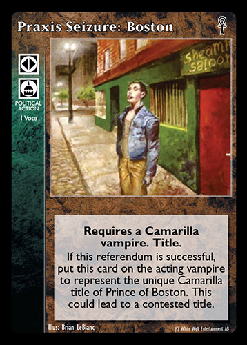 Nowa, niegrana karta Praxis Seizure: Boston Vampire the Eternal Struggle z dodatku, w ktorym byla obecna.