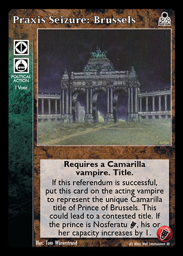 Nowa, niegrana karta Praxis Seizure: Brussels Vampire the Eternal Struggle z dodatku, w ktorym byla obecna.