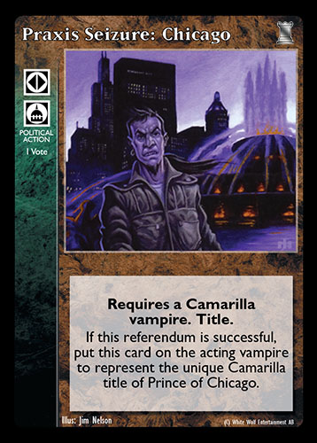 Nowa, niegrana karta Praxis Seizure: Chicago Vampire the Eternal Struggle z dodatku, w ktorym byla obecna.