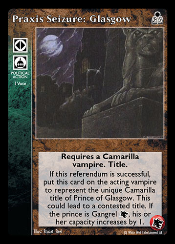 Nowa, niegrana karta Praxis Seizure: Glasgow Vampire the Eternal Struggle z dodatku, w ktorym byla obecna.
