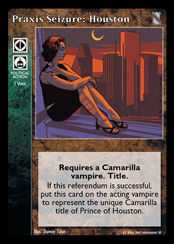 Nowa, niegrana karta Praxis Seizure: Houston Vampire the Eternal Struggle z dodatku, w ktorym byla obecna.